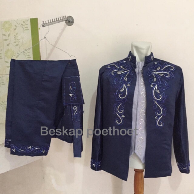 Jual Jas Baju Pengantin Pria Navy Kombinasi Silver Bukan Beskap Set Celana Dan Peci Indonesia Shopee Indonesia